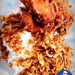 ร้านตั้งขายอยู่บริเวณด้านหน้าศูนย์อาหาร หาง่าย ดูจากคนและกลิ่นที่ลอยมากับลมก็รู้แล้ว ไก่ทอดจนกรอบ สีสวย กลิ่นแป้งหอมกระเทียม ทานคู่กับข้าวเหนียวร้อนๆและหอมเจียว ยังมีข้าวหมกไก่ขาย คนเข้ามาซื้อไม่ขาดสายดูเพิ่มเติม