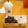 เมนูวาฟเฟิล พร้อมดิฟ มีทั้งช็อคโกแลต คาราเมล เสริฟพร้อมวิป และอาจเพิ่มไอศครีมได้ มีเมนูให้เลือกหลากหลาย ราคาไม่แพง วาฟเฟิลกรอบๆ หอมๆ มีเครื่องดื่ม ร้อน เย็นให้เลือกทาน. พร้อมกับบรรยากาศร้านน่ารัก โทนไฟสีส้มอบอุ่น ทานพร้อมฟังเพลงชิลๆดูเพิ่มเติม