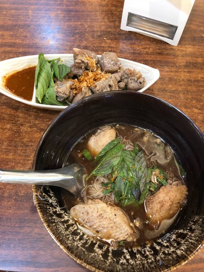 ร้านอยู่ในซีคอนศรีนคริทร์ ชั้นฝั่งโรงหนัง หน้าร้านจะมีรูปเรือเป็นเอกลักษ์ของร้าน เมนูที่ลองสั่งทาน ก๋วยเตี๋ยวเรือสมุนไพร เส้นบะหมี ราคา 55 บาท น้ำซุปกลมกล่อมได้กินสมุนไพรนิดๆ ในชามจะมีทั้งตับ ซี่โครงหมู ลูกชิ้นแล้วแต่เราจะเลือกสั่ง ทานพร้อมน้ำกระเจี๊ยบรสชาติออกเปรียวๆ ชื่นใจดูเพิ่มเติม
