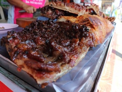 (เมืองตรัง) ⏩ พลาดหวังจากร้านหมูย่างเจ้าดังในตลาด เจ้าของโฮมสเตย์ที่ไปพักแนะนำให้มาลองเจ้านี้ค่ะ ซื้อกลับ กทม ทางร้านจะแพคใส่กล่องให้เรียบร้อย แพคกล่องละครึ่งกิโล ซื้อซี่โครงกลับด้วยก็สับใส่กล่องให้อย่างดีค่ะ ⏩ ทั้งหมูย่าง และซี่โครง จะออกรสหวานนำนะคะ หมูย่างหอมเครื่องเทศกำลังดี เนื้อแน่น หนังกรอบแต่ไม่ฟู รวมๆ ก็ใช้ได้ค่ะดูเพิ่มเติม