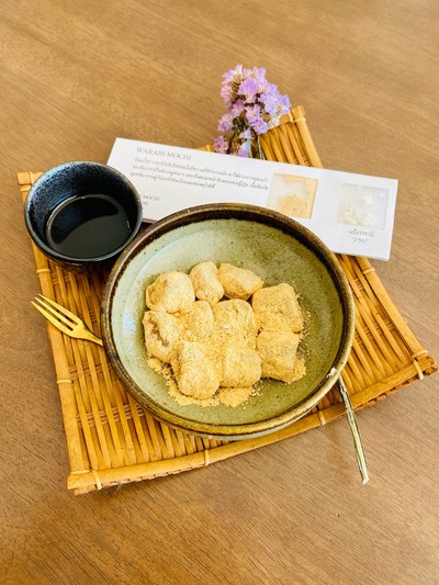 วาราบิโมจิ แป้งออริจินอล คลุกกับผงถั่วคินาโกะ วัตถุดิบนำเข้าจากญี่ปุ่น