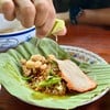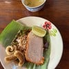 ใครมีโอกาสมาเที่ยวสุโขทัยไปถึงศรีสัชนาลัยผ่านนาต้นจั่น ร้านนี้แทบจะเป็นโอเอซิสของเมือง เข้าไปค่อนข้างลึก ร้านมีที่จอดด้านหน้าร้าน เข้าไปเป็นบ้านขนาดใหญ่มีที่นั่งกินหลายโซนเหมือนมานั่งกินใต้ถุนบ้าน เมนูมีไม่มากเลยสั่งมาครบ3อย่าง ก๋วยเตี๋ยวแบหมูชิ้นใหญ่เหมือนก๋วยเตี๋ยวสุโขทัยแบบแห้งจะหวานนิดๆ ส่วนหมี่พันข้างในเป็นวุ้นเส้นไส้เหมือนกันข้างในยังไม่หอมแต่ต่างตรงแป้งจะมีเผ็ดนิดตามพริกมาทำ ก๋วยเตี๋ยวเป...อ่านต่อ