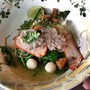 เล็กต้มยำ เปรี้ยวแซบมาก เส้นมันเล็กเรียว กว่าเส้นที่เคยกินตามท้องตลาด ลวกนิ่มๆ มีหมูเด้ง ลูกชิ้นบัวลอย หมูแดง กากหมูเจียว พอให้มีกลิ้นหอม ร้ายนี้ดีที่เส้นจริงๆ ผักก็มีตำลึง กับถั่วงอก หาน้อยร้านที่เด็ดตำลึงทำก๋วยเตี่ยวนะเนี่ย อีกอย่างเลยที่เด็ดมากคือขนมถ้วย นิ้มแป้งน้อย กะทิแตกมันไม่หวานมาก หน้าหวานเค็มจืด เข้ากับแป้งใบเตย บอกเลยว่าดีมากดูเพิ่มเติม