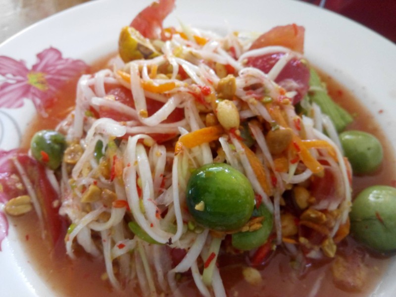 ร้านเล็กคนแน่นมากหบายคนแนะนำให้มากินร้านนี้เดี๋ยวไม่ถึงเชียงคาน ร้านอยู่ติดถนนหาง่าย ส้มตำอร่อยโดยเฉพาะตำด๊องแด๊ง เป็นอป้งปั้นเป็นตัวอ้วนๆคล้ายลอดช่องไทยแต่ใหญ่กว่า แป้งคล้ายขนมจีนแต่เหนียวๆนึบๆอร่อยมากๆ ไก่ย่างก็อร่อยหวานนิดๆเค็มหน่อยๆ ราคาก็ไม่แพงแต่คนเยอะมากรอโต๊ะว่างนานมาก แต่ไม่ผิดหวังเลยดูเพิ่มเติม