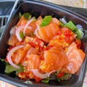 ราคายำแซลม่อนสดพิเศษที่ซื้อ 179 บาท แซลม่อนให้นิดเดียว สไลด์บาง ข้างล่างมีผักเอาแซลม่อนมาปิดวางไว้ข้างบน บอกตรงๆ ไม่คุ้มราคาดูเพิ่มเติม