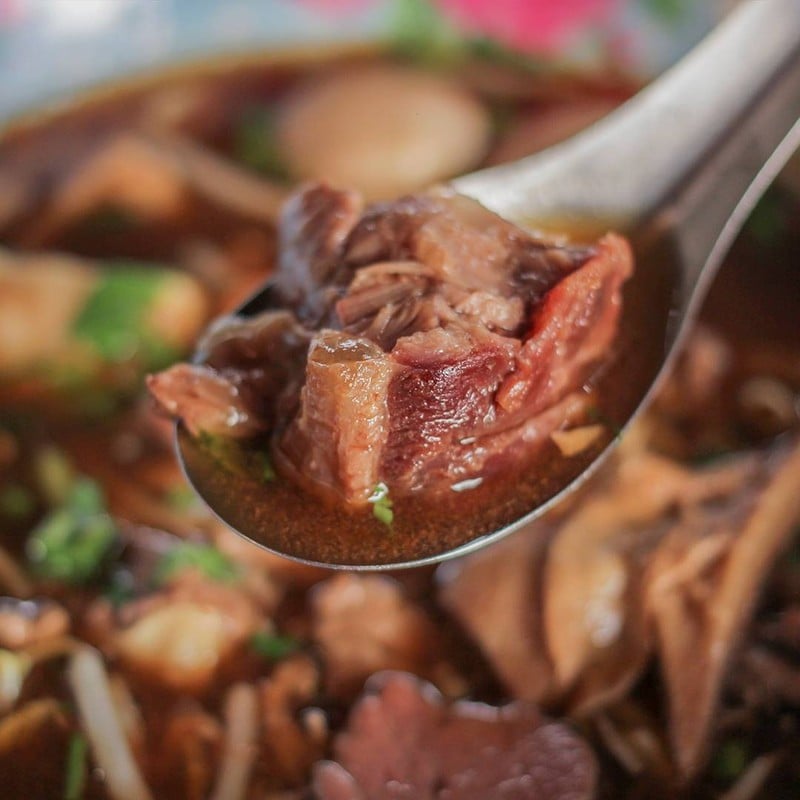 ใครเป็นสายก๋วยเตี๋ยวเนื้อต้องมาลอง ร้านก๋วยเตี๋ยวเนื้อเจ๊ง้อ ตรงข้ามบิ๊กสุ ราชวัตร เป็นร้านเก่าแก่ที่มีลูกค้าประจำ ทีเด็ดอยู่ที่เนื้อตุ๋นนุ่มๆ น้ำซุปเข้มข้น หอมกลิ่นเครื่องเทศแบบเนื้อแท้ๆ จะสั่งเป็นก๋วยเตี๋ยว หรือเกาเหลากับข้าวสวยร้อนๆ ก็ดีงาม เนื้อเปื่อยละลายในปาก ลูกชิ้นเนื้อแน่นเด้ง และยังมีเอ็นแก้วกรุบๆ ให้เคี้ยวเพลิน ราคา 100 บาท (ใส่มากกว่า 4 อย่าง หรือมีลิ้น คิด 150 บาท) #Wongnai2025ดูเพิ่มเติม