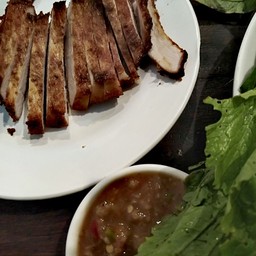 ข้าวหมูทอดสันนอกน้ำจิ้มแจ่ว