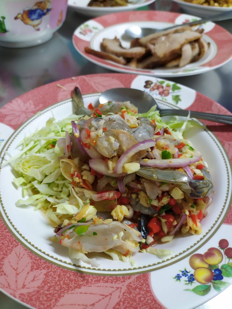 หลังจากมาไหว้ที่ศาลเจ้าพ่อเสือก็หาร้านอาหารที่มีแอร์เย็น ๆ ซึ่งเจอร้านนี้ร้านเดียวที่มีแอร์ เลยเข้าไปนั่งห่อะไรกิน สั่งส้มตำไทย ทอดมันปลากราย ไก่ย่าง ลาบหมู ส้มตำไทยรสชาติอาหารก็เหมือนร้านส้มตำทั่วไป ไม่ได้พิเศษโดดเด่นเท่าไหร่ โดยรวมให้ 3/5 ครับดูเพิ่มเติม
