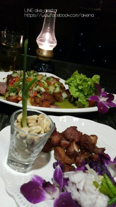 วันนี้นัดพรรคพวก มาคุย และรับประทานอาหาร ชมบรรยากาศ กรุงเทพฯ ยามค่ำคืน แถวถนนเกษตรนวมินทร์ บรรยากาศที่นี่ สวยงาม เหมาะแก่การนั่งดื่ม มีวงดนตรีเล่นให้ฟัง คิดค่าเปิด ไวน์ขวดละ 450 บาท สั่งอาหารยําถั่วพลูหมูแดดเดียว ผัดวุ้นเส้นใส่กุ้ง แกงปูใบชะพลู หมูสามชั้นทอดผัดพริกขี้หนู ( อร่อยมาก) น้ำพริกมะขาม ปลากระพงทอดน้ำปลา( ใช้เวลานาน) แกงเขียวหวานเนื้อตุ๋น ต้มกระดูกหมูผักกาดดอง สองอย่างหลังรสชาติไม่ค่อย...อ่านต่อ