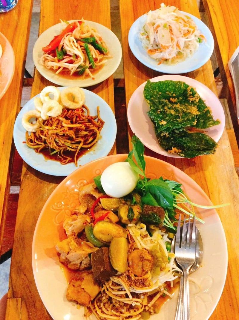 ร้านนี้เป็นขนมจีนบุฟเฟ่ทขอบอกว่ามีดีที่รสชาติของน้ำแกงราดขนมจีน ที่หลากหลาย ของทานเล่นก็อร่อยทั้ง ส้มตำ ยำ ผักทอดร้านนี้จะมี ไข่ต้ม แคบหมู และผักมากมาย ขนมจีนก็มีทั้งเส้นอัญชัญและธรรมดา รวมทั้งเส้นก๋วยเตี๋ยวอื่นๆ น้ำก็จะมีน้ำอัญชันถือได้ว่าเป็นร้านบุฟเฟ่ต์ที่มีรสชาติอร่อยทีเดียวค่ะดูเพิ่มเติม