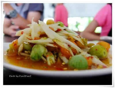 ร้านระหว่างทางไปบุรีรัมย์ ร้านบรรยากาศดี มีที่นั่งแบบเป็นซุ้ม พัดลม และแอร์ การบริการ ดี เมนูวันนี้ ส้มตำไทยใส่ปู อร่อยค่ะ ครบทุกรส ไม่แพงด้วย ชอบมาก ตำป่า ติดเค็ม จานนี้สั่งเป็นจานสอง ไม่ค่อยโอ ปลาเผา ตัวใหญ่ ย่างออกมาได้ดี แต่น้ำจิ้มไม่แซ่บเท่าไร หมูกระจก ไม่ถูกใจ เพราะใส่ใบมะกรูด รวชาติเลยเหมือนกินถั่วทอดมากกว่า อันนี้ควรปรับปรุงดูเพิ่มเติม