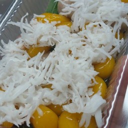 พิกัด ตลาดสามชุกซอย 1 ราคากล่องละ 30 ถ้า 2 กล่อง 50 บาท ไม่ชอบการตั้งราคา เหมือนบังคับขาย 2 กล่อง แม่ค้าบอกว่าถ้าไม่แช่เย็นเก็บได้วันนึง แช่เย็นเก็บได้หลายวัน มีถุงแยกมะพร้าวมาให้ต่างหาก ที่แปลกหน่อยคือไข่ปลามีรสเผือกด้วย ปัญหาคือกล่องแรกทานร้อนๆ เพิ่งทำเสร็จใหม่อร่อย เหนียวนุ่มดีมาก อีกกล่องซื้อกลับบ้าน กลัวจะเสียเลยแช่ตู้เย็น ทานไม่ได้เลยค่ะ แข็งเป็นไตเลย เสียดายดูเพิ่มเติม
