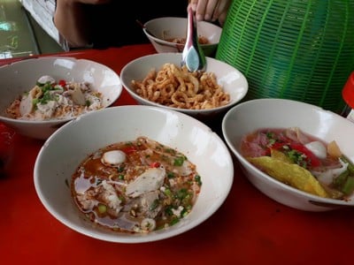 ต้มยำออกหวานไปนิด เยนตาโฟที่นี่ใส่ถั่วด้วย ถือว่าอิ่มอร่อยในราคา 20 บาท น้ำฟรีแบบเหยาะอุทัยทิพย์ ชอบบรรยากาศชิลๆริมน้ำ แต่มีโต๊ะแค่ 4 โต๊ะ อาจต้องรอคิว พ่อค้าแม่ค้าบริการดี ร้านนี้ปิดทุกวันจันทร์ ที่จอดรถหายากนิดหนึ่งค่ะดูเพิ่มเติม