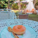 ร้านตั้งอยู่ในออฟฟิศของรีสอร์ท ส่วนสวนด้านนอก ตกแต่งน่ารัก ทั้งแนวสวนส้ม แคมป์ปิ้ง และชายหาด