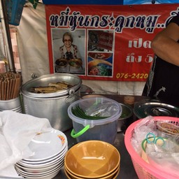 อี๋เป๋ง หมี่หุ้นกระดูกหมู ร้านนี้เป็นคุณยายอายุเยอะแล้วมาขาย ทำอะไรก็จะช้าสักหน่อย ลูกค้าต้องรอหน่อยนะ ร้านอยู่พิกัด ตรอกสุ่นอุทิศ บนถนนเยาวราช มาตรอกนี้ ของกินเพียบ หมี่หุ้นเป็นหมี่พื้นเมืองของภูเก็ตเค้า สำหรับรสชาติ หมี่จะออกรสหวาน ตัดกับน้ำซุปที่ออกเค็มๆๆ ทำให้เป็นหมี่ที่เค้ากัน เสริฟพร้อมกระดูกหมูอีก 3 ชิ้น สนนราคา 40 บาท คุณป้าแนะนำว่า ต้องกินคู่กับน้ำพริกน้ำส้มอีกหน่อยจะอร่อยดีดูเพิ่มเติม