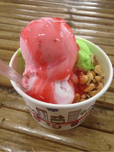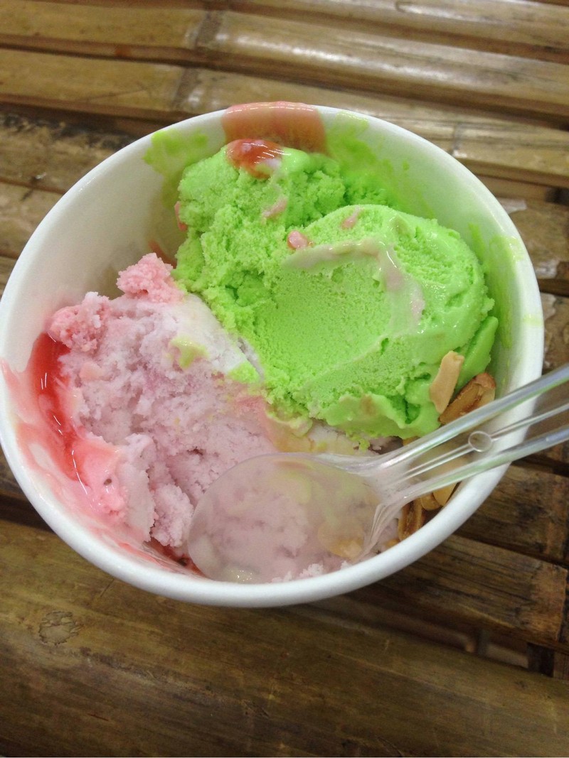 ร้านไอติมที่มีชื่อเสียงอย่างมากใน จ.เชียงใหม่ ที่ต้องลองทานสักครั้งหนึ่ง วันนี้ได้มาทานอาหารที่เซ็นทรัล แอร์พอร์ต เลยได้ลองทานหลังจากที่เล็งมานาน ราคา 20 บาท เลือกได้ 3 รส เค้าจะตักให้รสละ 2 ก้อน รวมเป็น 6 ก้อน เราเลิอก ช็อกโกแลต เรนโบว์ กะทิ เลือกเครื่องเพิ่มได้อีก แต่เราไม่ได้เลือก รสชาติก็นุ่มๆ อร่อยดี ละมุนลิ้น ถือว่าคุ้มค่าเลยทีเดียวดูเพิ่มเติม