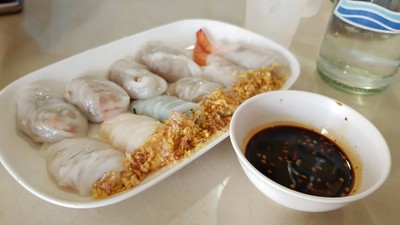 ขับรถออกจากตัวเมืองผ่านร้านนี้ เห็นรถเยอะเลยลองแวะขับเข้าไปด้านในมี่ที่จอดรถ หน้าร้านนั่งทำปากหม้อหลายไส้ มีแบบทำใส่กล่องกลับบ้านเรียงไว้หลายกล่อง เราสั่งแบบกล่องกลับบ้าน 2 กล่อง @ 60- ไส้รวม ไส้ข้าวโพด วุ้นเส้น กุ้ง กุ่ยช่าย หมูสับ ตัวแป้งนิ่มอร่อยดีดูเพิ่มเติม