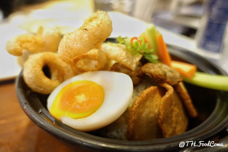 kloset Cafe สาขาสยามพารากอน ตั้งอยู่ใกล้ๆ Coffee Beans by Dao ร้านเป็นลักษณะรถไฟ มีที่นั่งสัก 10-1-5 โต๊ะ อาหารเป็นแนวฟิวชั่นไทย ฝรั่ง วันนี้ได้ทาน ข้าวผัดน้ำพริกหนุ่มหมูยอ เครื่องเยอะเชียว รสชาดค่อนข้างดี เผ็ดพอสมควร แคบหมูแข็งไปหน่อย ซุปไข่ตุ๋น ไข่ตุ๋นมีน้ำซุปเยอะๆให้ซด ใส่วุ้นเส้นด้วย ซดดีคล่องคอ อร่อยดูเพิ่มเติม