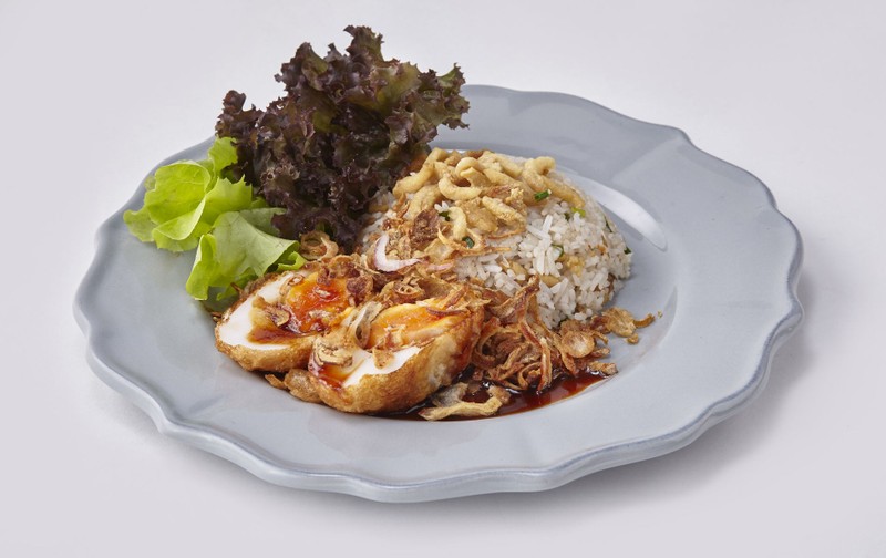Fried Rice with Pork Cracklings served with Boiled Egg in Tamarind Sauce