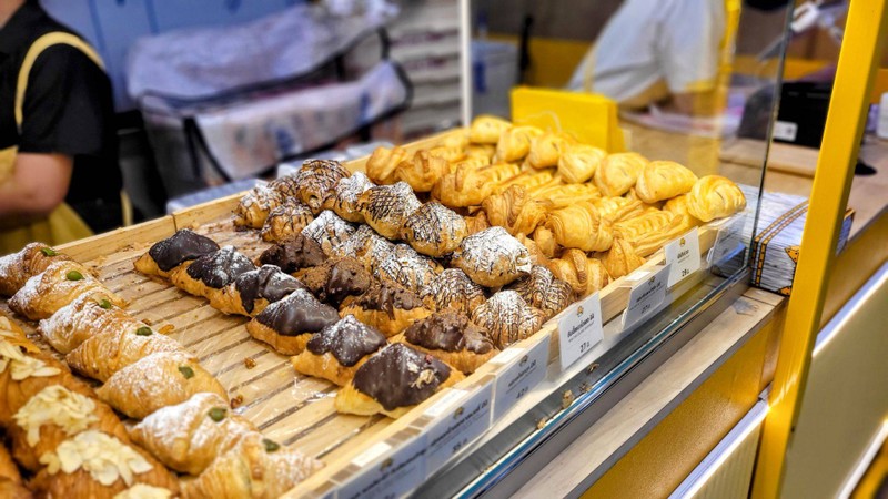 ร้านนี้ขายครัวซองชิ้นเล็กเป็นหลัก สาขาหลักอยู่แถวศาลาแดง พบได้ตามอีเวนต์งานขนมแทบทุกห้าง. สาขาในห้างแบบร้านซื้อได้ตลอด มีอยู่ 5 แห่ง หนึ่งในนั้นคือเซ็นทรัลลาดพร้าว อยู่ชั้น 2 ใกล้กับ Starbucks ที่ติดกับทางเชื่อม BTS เมนูมีหลายหน้าให้เลือกครับ ตัวขายดี Top 3 คือ *ไข่เค็มลาวามินิ *ครีมนมฮอกไกโด *ผักโขมอบชีสมินิ ถ้าจะใส่กล่อง ต้องเลือก 4 ชิ้น ก็เลยเลือกหน้าเห็ดมาลองอีกชิ้น จากที่ได้ลองแล้ว อร่อ...อ่านต่อ
