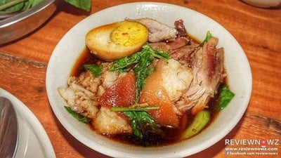 ผมเปิดหาเอาวงในเลยครับ มีคนตั้งไว้แต่ยังไม่ใส่รูป ร้านอื่นก็มีแต่ใส่รูแล้ว ใส่ราคาคร่าวๆแล้ว อ่านจากรีวิวแล้วเลยเดินมาลองกินดู อีกอย่างใกล้ที่พักด้วย เลยกะว่าจะมาเพิ่มรูปให้ สั่งข้าวขาหมูมา 1 จาน 50 บาท ร้านเค้าแยกกับข้าวมา มีน้ำซุปมาด้วย โอวหน้าตาหน้ากิน แถมอร่อยด้วย มิหน้าล่ะนั่งกินอยู่ คนท้องถิ่นแวะเวียนมากินไม่ขาดสาย เลยตามด้วยก๋วยเตี๋ยวไก่อีกชามนึง ก็โอเครครับ อร่อย ติดหวานไปนิด แต่พอร...อ่านต่อ