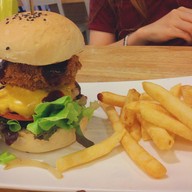 เดินผ่านทีไรไม่เคยได้เข้า แต่พอได้เข้าทีก็ติดใจเลยแหล่ะ ร้านเล็กๆ ที่ ชั้น G siam paragon สั่งออร์เดอร์แล้วต้องรอนิดนึงค่ะ ดีที่ไม่หิวมาก ไม่งั้นได้โมโหหิวแน่ๆ555 เบอร์เกอร์ชิ้นค่อนข้างใหญ่เลยทีเดียว เราสั่งเป็นเบอร์เกอร์ไก่ค่ะ ตัวเนื้อไก่ชิ้นใหญ่ใช้ได้ หมักมาได้รสชาติเข้มข้นเข้าเนื้อดีค่ะ ส่วนตัวว่าฟรายส์อร่อยดี ให้เยอะด้วยอะ55555 โดยรวมแล้วก็ถือว่าโอเคนะคะ คราวหน้าว่าถ้ามาจะลองสั่งเนื้อดู จะไ...อ่านต่อ