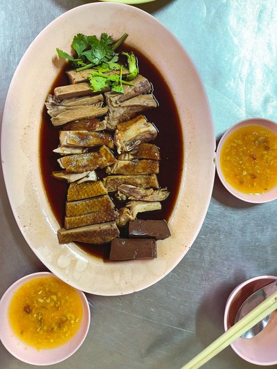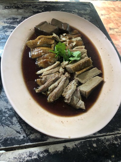 มาลองร้านห่านพะโล้เก่าแก่ย่านถนนจันทน์ สั่งห่านจานกลาง หมูกรอบทอดกระเทียม กับผัดผักบุ้งไฟแดงไป ห่าน รสชาติดี เนื้อแน่น น้ำพะโล้รสชาติชวนคิดถึงคล้ายร้านห่านเจ้าโปรดแถวคลองตันแต่ตอนนี้ย้ายไปไกลล่ะ ผักบุ้งผัดได้กรอบดีรสชาติหวานเค็มกำลังดี หมูกรอบเค็มไปหน่อยถ้ากินเปล่าๆ แต่กินคู่กับข้าวกำลังดีเลย เป็นร้านห่านที่ไม่แพงมากถ้าผ่านมาช่วงกลางวันอีกน่าแวะมากินได้เรื่อยๆดูเพิ่มเติม