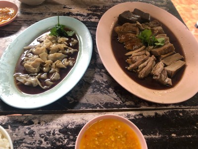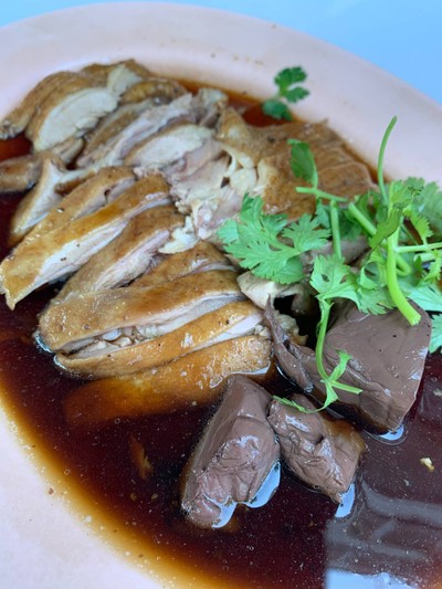 สไตล์เมนูอาหารแบบโบราณ การตุ๋นได้ไม่มึกลิ่นสาบห่านที่นี่ นอกจากเนื้อนุ่มๆแล้วยังมีไส้ห่านเลือดห่านกินพร้อมกับผักชีลาดน้ำพะโล้และนำไปจิ้มกับน้ำจิ้มซีฟู้ด กินกับข้าวสวยหอมมะลิเก่าร้อนๆเรียงเม็ด ซึ่งข้าวมีผลกับการกินเมนูนี้มาก ต่อด้วยผัดผักสไตล์จีนโบราณหอมกลิ่นกะทะ แนะนำมาก ผัดผักบุ้งไฟแดง 50 บาท ห่านพะโล้จานกลาง 200 บาท ข้าวสวย 7 บาท น้ำชาจีนบริการเป็นเหยือก หอม คิดคนละ2บาทพร้อมน้ำแข็งดูเพิ่มเติม