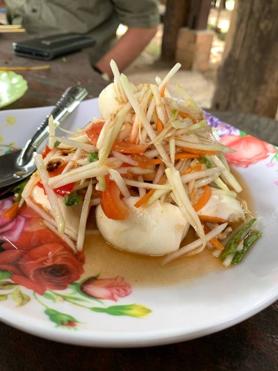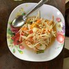 ร้านตั้งอยู่ริมถนนสันกำแพงเลย จอดรถริมถนนก็ได้แต่จะเข้าไปจอดในร้านก็ได้ ร้านมีก๋วยเตี๋ยวเรือ ส้มตำ หมูสะเต๊ะไว้บริการ สำหรับก๋วยเตี๋ยวเรือ น้ำซุปออกแบบๆ แจ๋วฮ้อน ไม่ค่อยเหมือนน้ำซุปก๋วยเตี๋ยวเรือเท่าไร สำหรับหมูสะเต๊ะที่สั่งมาอร่อยมากดูเพิ่มเติม