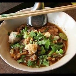 ร้านก๋วยเตี๋ยวเรือรสเจ็บและจัดจ้านในย่านนี้ ก๋วยเตี๋ยวห้อยขา สมดังชื่อเลย เก้าอี้สูงงงงดี...ต้องปีนป่ายขึ้นไปนั่ง 'ขาห้อย' ตามว่าเลย บรรยากาศดีมีความเรียลลิตี้ของร้านอาหารท้องถิ่น สั่งน้ำตกเนื้อลูกชิ้นลูกโตกระแทกตามาก่อน น้ำและผักสดบริการฟรี พนักงานคุณป้าใจดีน่ารักมากดูเพิ่มเติม