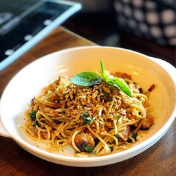วันนึงกำลังจะไปทำธุระศรีราชา แต่หิวแล้ว ต้องหาไรกินก่อนแหละ เห็นรีวิวพอดีว่าร้านนี้อร่อย เอ้ะ น่าสนใจสปาเก็ตตี้ไส้กรอกอีสาน ชื่อแลแซ่บ ไม่รอช้า มุ่งหน้าไปลองเลยจ้าา ร้านเล็กๆ มีที่นั่งไม่มาก สัก3โต๊ะ และก็เคาเตอร์บาร์ ร้านเน้นอาหารไทยๆ ร้านตกแต่งสวยน้ะะ ราคาไม่แพงด้วย เมนู - สปาเก็ตตี้ไส้กรอกอีสาน อันนี้เด็ด รสดีงาม เกินคสดหมาย เข้มข้นถึงใจ จะไปกินอีกกก - สปาเก็ตตี้เบค่อนพริกแห้ง อันนี้ก็อร่อย...อ่านต่อ