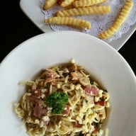 ร้านนี้อยู่ในซอยลึกหน่อย แต่หาไม่อยากค่ะ มีป้ายบอกตลอด ร้านสวยดี บริเวณกว้างขวาง วิวเขียวๆ สวย สดชื่นดี ถ้าไปหน้าหนาวคงจะเริ่ด มีบ้านแมวโดยเฉพาะ ทำอย่างดีเลย แต่ตอนไปมีแมวต้อนรับแค่ 2 ตัวเองอะ คือเค้าจะมีเวลาปล่อยแมวค่ะ เป็นแมวไทยตัวอ้วนๆ ทั้งนั้น สามารถไปส่องได้ที่บ้านแมว อาหารก็ใช้ได้ค่ะ กวางสั่งสปาเก็ตตี้เบคอนผัดกระเทียมพริกแห้ง รสจัดอร่อยดี มีไข่ยางมะตูมมาด้วย 1 ฟอง แฟนสั่งพอร์คช้อปพริกไทย...อ่านต่อ