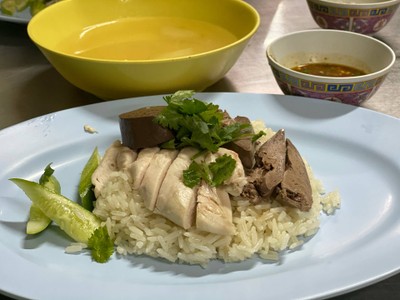 ร้านอยู่ตรงข้ามเยื้องๆกับ ข้าวมันไก่นายธง ไม่มีที่จอดรถต้องลุ้นเอาจอดริมถนน ข้าวมันไก่รสชาติใช้ได้ ข้าวนุ่ม ราคาไม่แพงแค่ 45 บาท ก๋วยจั๊บเยอะมากๆ เครื่องจุกๆ ทั้งหมูกรอบ ไข่ต้ม หมูต้ม เครื่องใน เส้นเยอะมากกินอิ่ม นํ้าซุปออกรสชาติเบาๆหอมเครื่องเทศแต่ไม่ข้นมากเหมือนเจ้าอื่น จะคล้ายนํ้าก๋วยเตี๋ยวเป็ดมากกว่า ถ้าไม่ปรุงจะจืดๆหน่อย แต่ก็โอเคไปอีกแบบค่ะ ราคา 50 บาทดูเพิ่มเติม