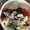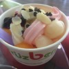 ไอติมโยเกิร์ตเนียนนุ่มรสเปรี้ยวอมหวาน มี6รสชาติให้เลือก กดปริมาณได้เอง จะผสมหลายรสชาติก็ไม่ใช่ปัญหา เพราะร้านนี้เค้าคิดราคาตามน้ำหนักจ้า ออนละ 12 บาท พอกดไอติมเสร็จก็ไปเลือกตักท๊อปปิ้งได้เองตามใจชอบ มีทั้งผลไม้ในน้ำเชื่อม 6ถาด และพวกชอคโกแลตเม็ดๆ มีให้เลือกค่อนข้างครบ แต่แนะนำว่าตักแต่พอดีๆก็พอเพราะอย่างที่บอก ราคาคูนน้ำหนัก ใส่เต็มถ้วยแบบพอดีๆก็ตกร้อยบาทนิดๆละจ้าดูเพิ่มเติม
