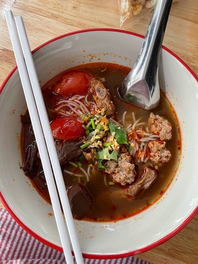 น้ำเงี้ยวหมู ขนมจีนเส้นสด ซี่โครงนุ่ม น้ำซุปต้มกระดูกหมู หวานหอมกลมกล่อม ไม่ใส่ผงปรุงรส ไม่ใส่ผงชูรส สะอาด ถูกหลักอนามัย