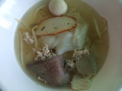 ถ้าใครเคยไปเดินเที่ยวตลาดน้ำบางน้ำผึ้งต้องชอบใจแน่ๆ เพราะว่ามีสินค้า และร้านอาหารต่างๆมากมาย เป็นแถวเรียงรายยาวกันไป มีทะลุซ้ายขวาตลอดแนว เดินทะลุเข้ามาลึกพอสมควร จึงมาเจอกับร้านก๋วยเจี๊ยบเรือ จึงแวะเติมพลังกันสักหน่อย กับ เส้นเล็กต้มยำ รีบชิมก่อนปรุงเพราะกลัวว่าจะเข้มข้นเกินไป ที่ไหนได้ต้องปรุงเพิ่มอีกเยอะเลย ไม่มีความเป็นต้มยำสักเท่าไร ราคาชามละ 25 บาท แต่รสชาติไม่ค่อยอร่อย บวกกับเครื่องที่ใส...อ่านต่อ