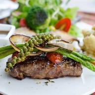 แนะนำจากเจ้าถิ่น ได้ลองทาน steak เสิร์ฟมาในจานใหญ่ มีเครื่องเคียงเยอะ มันฝรั่งทอด เห็ดย่าง มะเขือเทศอบ ข้าวโพด และผักกรีนโอ๊ค เนื้อสัมผัสเนื้อฉ่ำ หอมเนย ทานเคียงด้วยซอสพริกไทยดำ รสชาติเข้มข้น หอมกลิ่น Thyme คุณภาพ⭐️⭐️⭐️⭐️⭐️ รสชาติ⭐️⭐️⭐️⭐️ ความคุ้มค่า⭐️⭐️⭐️⭐️ บรรยากาศ⭐️⭐️⭐️⭐️ ประสบการณ์ส่วนตัว⭐️⭐️⭐️⭐️