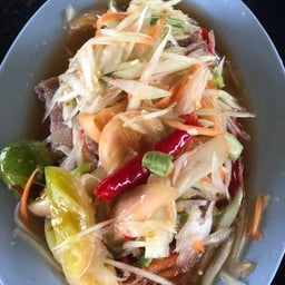 เป็นร้านที่ลักษณะเป็นซุ้ม มีความเป็นส่วนตัวดีคะ มีเพลงให้ฟังทุกซุ้ม เห็นมีโซนของห้องแอร์ด้วย คิดว่าน่าจะมีคาราโอเกะด้วยนะคะ บรรยากาศโดยรอบก็เป็นธรรมชาติๆ แต่รสชาตอาหารเนี้ยะไม่ธรรมดาเลยคะ แซ่บเว่อร์! ใครชอบอาหารพื้นเมือง ห้ามพลาดนะคะ มีให้เลือกเยอะมาก อ่านเมนูแล้วเลือกไม่ถูก แต่ก็ลองสั่งอาหารพื้นๆมาทาน อย่าง ส้มตำถาด, พวงนมย่าง, อ่อมหมู บอกเลยแค่นี้อร่อยสุดๆดูเพิ่มเติม
