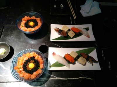 ในขณะนี้มี promotion ลดราคาอาหาร จึงลองมาชิมกันดู - Salmon Galaxy ลด 50% เป็นข้าวหน้าปลาแซลมอนหั่นเป็นชิ้นเล็ก ๆ ตรงกลางมีไข่นกกระทา ไข่กุ้ง และ ikura รสชาติอร่อยดี ของสด ข้าวซูชิปรุงรสมาอ่อน ๆ มีงาด้วย พวกซูชิ ลด 40% - ทูน่าแบบรวม 3 อย่างมา 2 ชุด Akami รสชาติดี เนื้อชิ้นใหญ่ หนา ข้าวซูชิอร่อย Chutoro ชิ้นใหญ่เช่นกัน อร่อยมาก Otoro ก็ดีมาก มันสุด ๆ ชิ้นยาว ถือว่าที่นี่แม้จะลดราคาแต...อ่านต่อ
