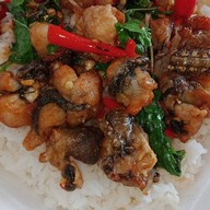 กะเพรากบชิ้นทอด