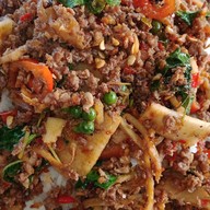 กะเพราเนื้อสับพริกแห้ง