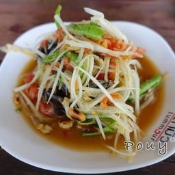 เป็นร้านส้มตำที่อยู่ริมหาดชายทะเลบ้านกรูด มีให้เลือก 2โซน คือฝั่งมีหลังคาในร้าน เป็นโต๊ไม้ๆ กับข้ามถนนมานั่งริมหาด จะเป็นโต๊ะม้าหิน ไปตอนบ่ายๆ อากาศดี เหมาะกับนั่งดูบรรยากาศริมทะเลมาก ร้านรสชาติดี ราคาไม่แพง เลยสั่งกันไม่ยั้ง ทานอาหารอิ่มก็ไปไหว้พระมหาเจดีย์เก้ายอด และพระพุทธกิติสิริชัย (หลวงพ่อใหญ่) ที่วัดสายทาง สวยมากๆ เลยดูเพิ่มเติม