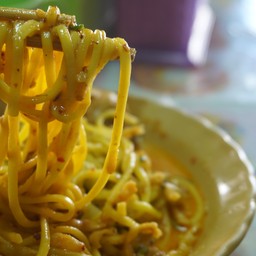 ภายในร้านก็เป็นบ้านธรรมดาทั่วไป วันนี้สั่งก๋วยเตี๋ยวต้มยำน้ำใส มาเสริฟปุ๊บ โห!! มันเยอะมากก ถ้วยเดียวอิ่ม ถ้วยเดียวตึ้ก จริงๆ อร่อยค่ะ รสชาติโอเค ราคาไม่แพง มีอาหารให้เลือกกินเยอะ เช่น ก๋วยเตี๋ยวน้ำใส น้ำตก ต้มยำ ขนมจีน ข้าวซอย ข้าวขาหมู หมูแดง หมูกรอบอ่านต่อ