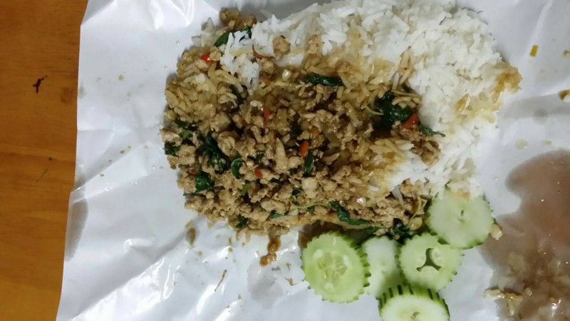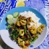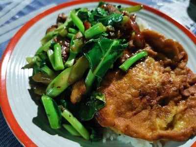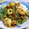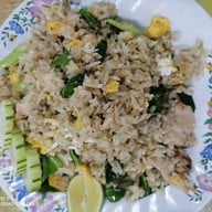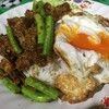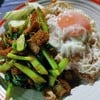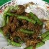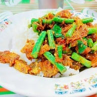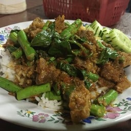 ถั่วฝักยาวผัดกะปิราดข้าว เป็นเมนูที่กินประจำ เวลามาร้านนี้ รสชาติเข้มข้นดี หอมกลิ่นกะปิ ถั่วฝักยาวผัดมาได้ยังกรอบอยู่ กินกับข้าวสวยร้อนๆ เข้ากันดี น้ำซุปก็มีชิ้นส่วนไก่มาให้ได้แทะเล่นๆด้วย ราคาจานละ40บาท อิ่มกำลังดีดูเพิ่มเติม