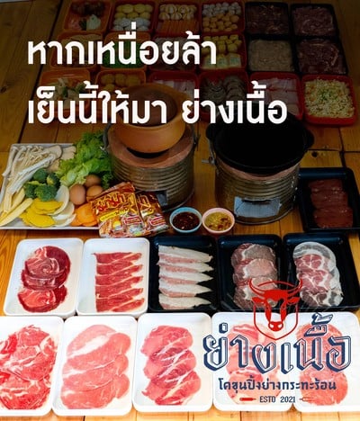 ย่างเนื้อ โคขุนปิ้งย่างกระทะร้อน