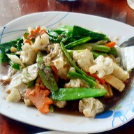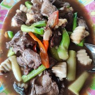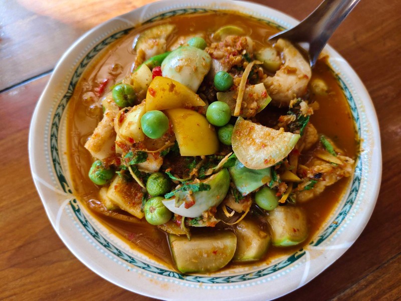 คนท้องถิ่นพามากินบอกเป็นร้านดัง รสชาติอาหารแบบเมืองกาญจน์แท้ๆ อาหารที่สั่งวันนั้นมี แกงป่าปลาคัง ผัดเผ็ดหมูป่า ผัดผักและไข่เจียว อาหารรสชาติถึงเครื่องแกง แกงป่าแบบเข้มข้นน้ำขลุกขลิก รสจัดเผ็ดร้อนถึงใจ เรากินเผ็ดไม่เก่งต้องตักแต่เนื้อๆ คลุกข้าว แกล้มด้วยไข่เจียวแก้เผ็ด กินไปกินน้ำไป แต่ยิ่งเผ็ดก็ยิ่งอร่อยดูเพิ่มเติม