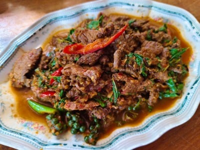 เป็นอีกหนึ่งร้านอาหารป่าที่ใครยังไม่เคยลองถือว่ายังมาไม่ถึงเมืองกาญ พริกแกงที่ใช้ปรุงอาหารเป็นสูตรเฉพาะมีเอกลักษณ์ เผ็ดหอมไม่เหมือนใคร อาหารป่าสีสีนดุดัน รสชาติจัดจ้านชนิดที่คนกินเผ็ดเก่งๆยังควันออกปากออกจมูก ทั้งแกงป่า ผัดเผ็ด ฯลฯ อร่อยเข้มข้นชนิดที่ไม่ต้องไปหาที่ใดเหมือน เมนูที่ขึ้นชื่อนอกจากแกงป่าแล้ว ยังมีผัดเผ็ดที่ขึ้นชื่อคือ กวางผัดนรก เนื้อกวางหั่นชิ้นกำลังดี เนื้อสดนุ่มไม่ซีด ไม่เหนียวเ...อ่านต่อ