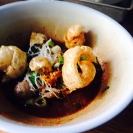 ก๋วยเตี๋ยวเรือน้ำข้นขลุกขลิก หอมเครื่องแกง แบบไม่เคยทานที่ไหนเลย เส้นเหนียวนุ่มอร่อย เนื้อสด เนื้อเปื่อยอร่อยใช้ได้ ลูกชิ้นลูกน้อยๆ พอได้ กากหมูเจียวกระเทียม ทอดมาหอมๆ พองๆ คลุกกับก๋วยเตี๋ยวคือดีมาก แนะนำให้ทานคู่กันครับดูเพิ่มเติม