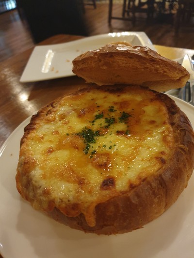 ร้านตรงหลัง paradise มีดนตรีสด มีเบียร์ บรรยากาศสไตล์วินเทจ พนักงานแนะนำดีมาก อาหารอร่อย ซุปครีม กินคู่กับขนมปังอร่อยมากกกกกก กินสองคนก็เกือบอิ่มละ กอร์ดองเบอ ไส้หนา กินแล้วไม่เลี่ยน มีสลัดผลไม้กับสลัดผักให้ดูเพิ่มเติม