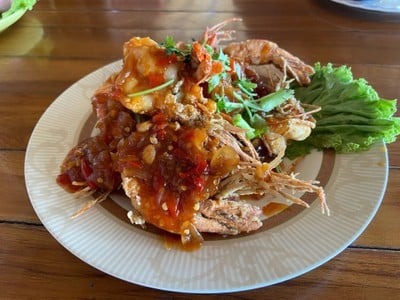 อาหารอร่อย คนแน่นมาก รอคิวนานไปหน่อยค่ะ แต่อาหารก็สดอร่อยดีค่ะ ปลาหมึกผัดกระปิน่าทานมากสั่งกันทุกโต๊ะเลยค่ะ ลองสั่งมาทานบ้าง หมดซะงั้น อดเลย กุ้งราดซอสมะขามอร่อยดีค่ะ 3รส เปรี้ยว เค็ม หวาน ปลาทูต้มเค็มอร่อยดีค่ะ ปลากระพงทอดน้ำปลาเนื้อแน่นๆสดมากค่ะดูเพิ่มเติม